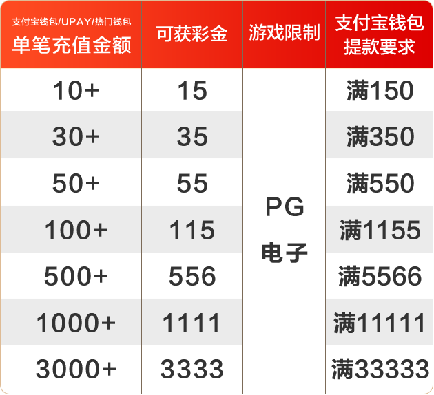 6元 | 盈利满120元 即可提款 (仅限PG电子游戏) |